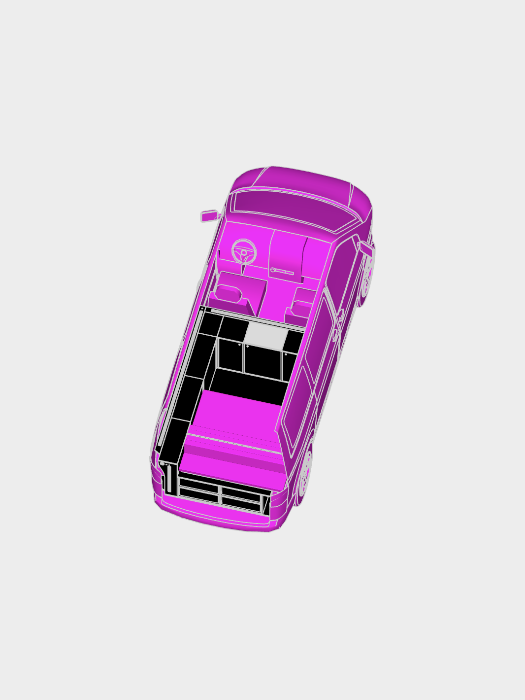 s’intéresse principalement à la conception de petits espaces intérieurs. Parce qu’un petit espace vaut autant qu’un grand. L’usage devient le même quand on y ajoute des éléments clés comme une cuisine, une table, une assise, un lit… C’est cibler le nécessaire. À travers un travail d’assemblages, le but est de faciliter le quotidien combinant mouvements et déplacements. Le petit espace devient un refuge, une cabane pouvant être transportés partout et nul part. Faisant initialement rêver les enfants, la cabane est le moteur de ce projet alors pourquoi pas une cabane à moteur.